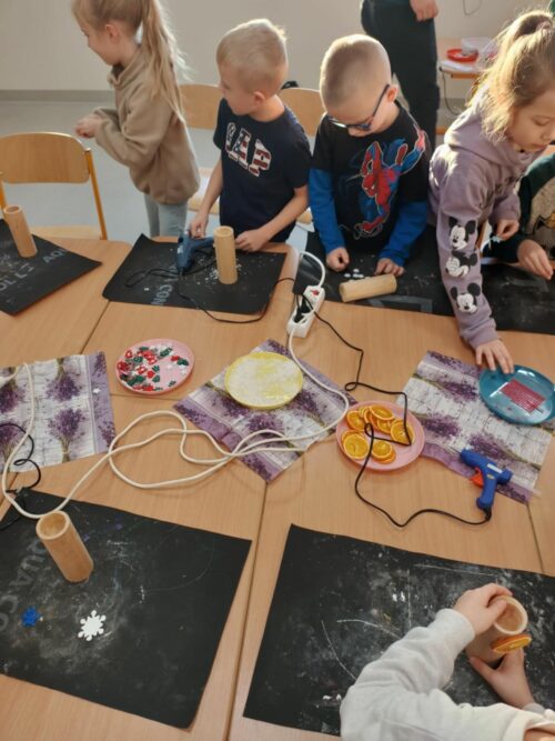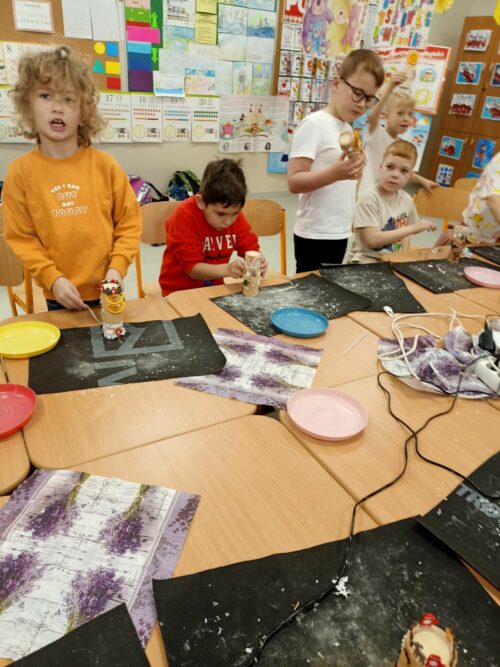 Powstałe świeczniki wyróżniały się pomysłowością i indywidualnym charakterem – każdy z nich był wyjątkowy. Uczniowie byli dumni ze swoich prac, wiedząc, że wykonane własnoręcznie upominki sprawią radość ich rodzicom w świątecznym czasie.
