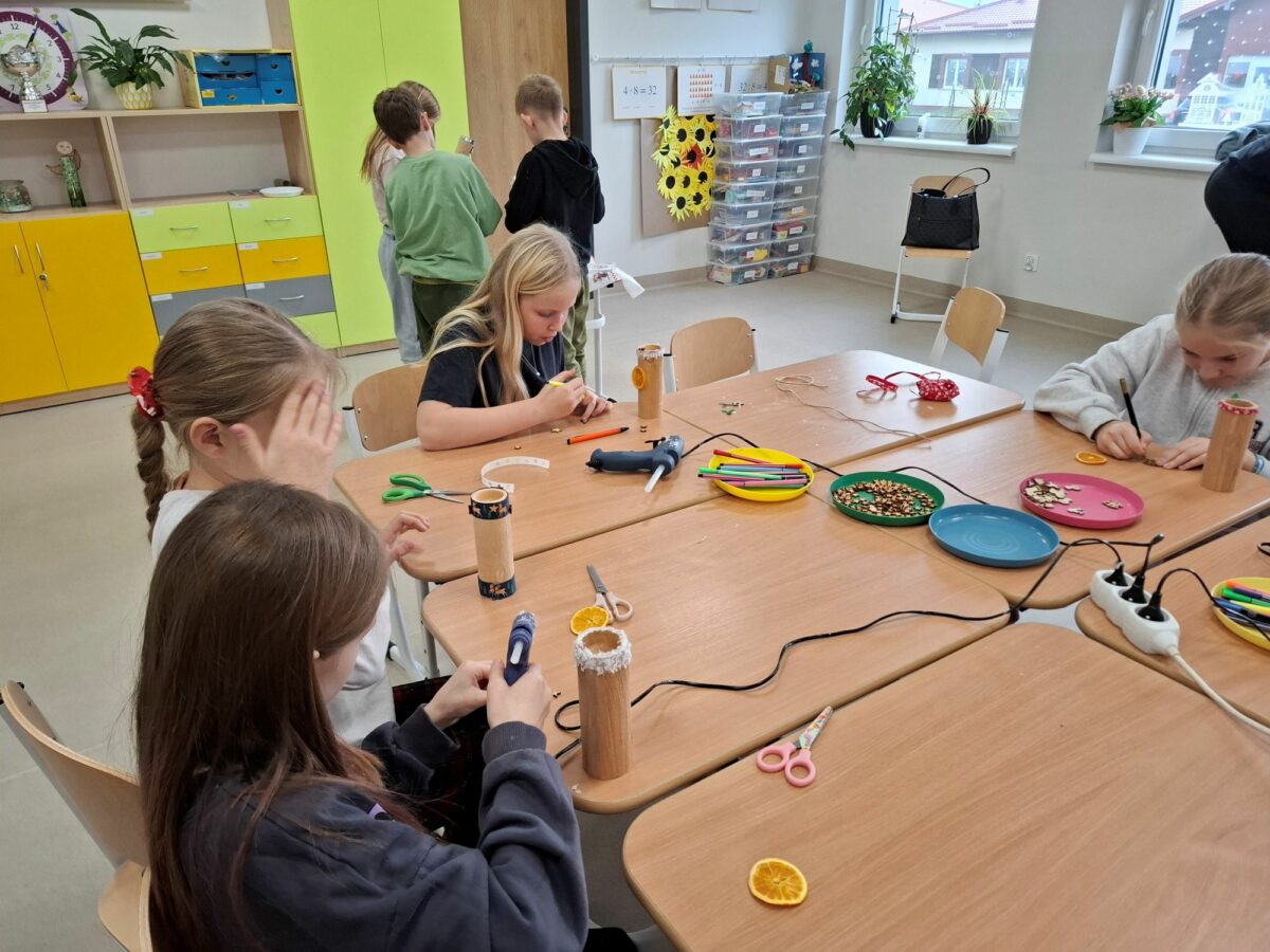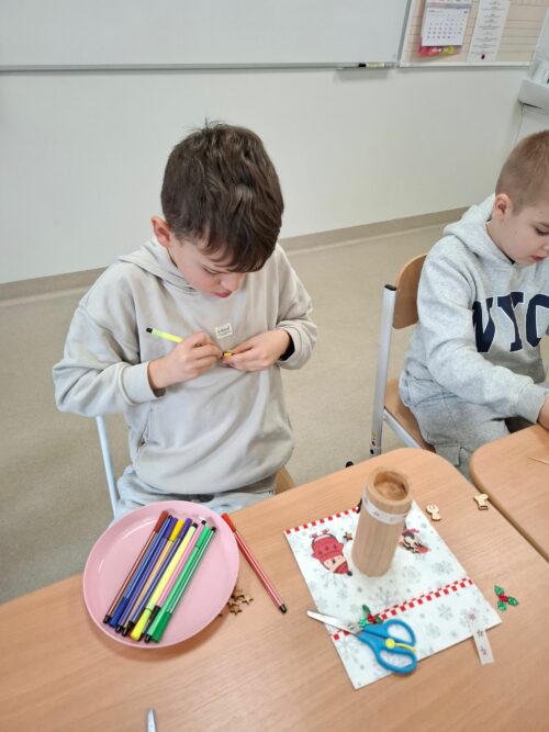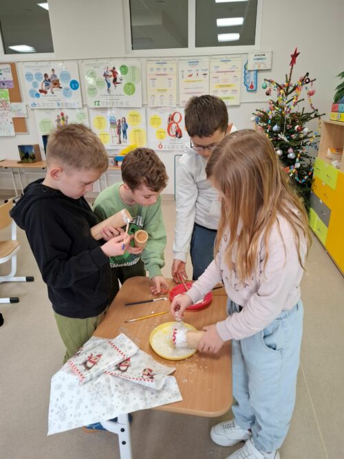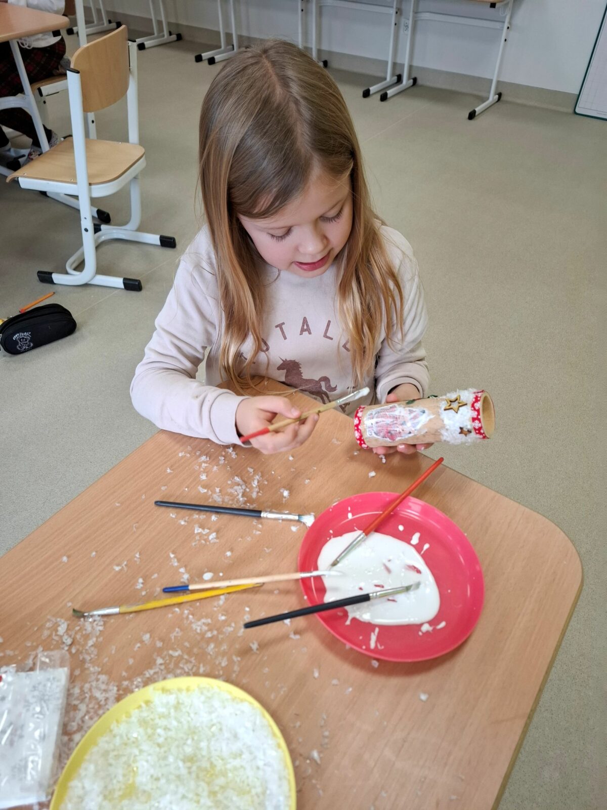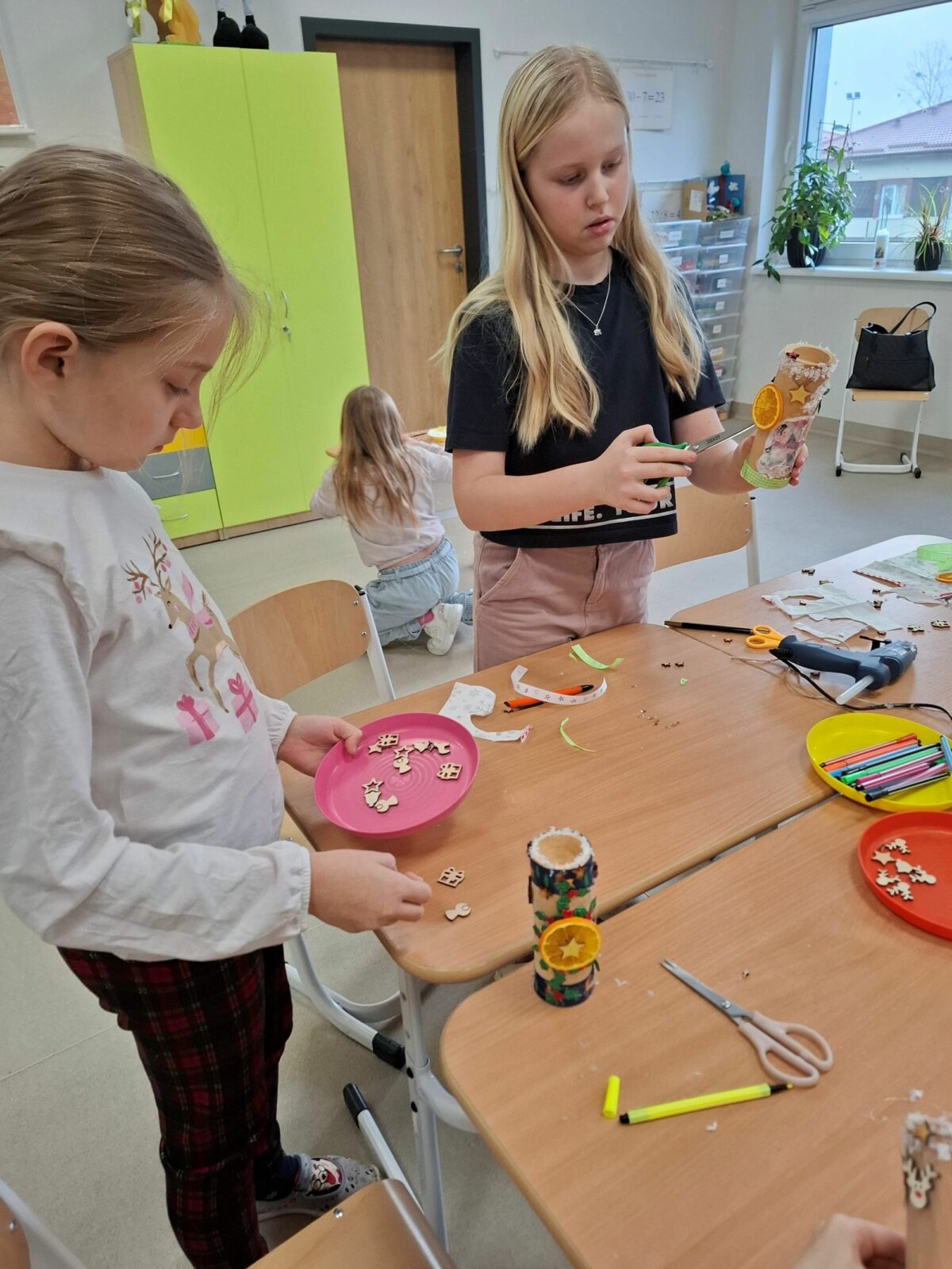 2 grudnia uczniowie klas trzecich wzięli udział w warsztatach bożonarodzeniowych. Były to kreatywne zajęcia, które rozwijają zdolności manualne i wprowadziły uczniów w magiczną atmosferę Bożego Narodzenia. Podczas tych zajęć dzieci tworzyły piękne, niepowtarzalne świeczniki na tealight, które ozdabiały według własnych pomysłów. Celem tych warsztatów było rozwijanie kreatywności, wspólne tworzenie w radosnej atmosferze oraz poznawanie tradycji świątecznych.
