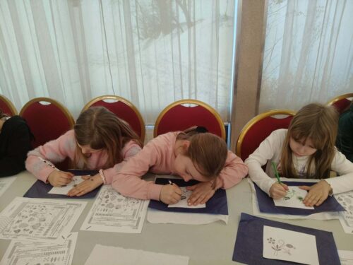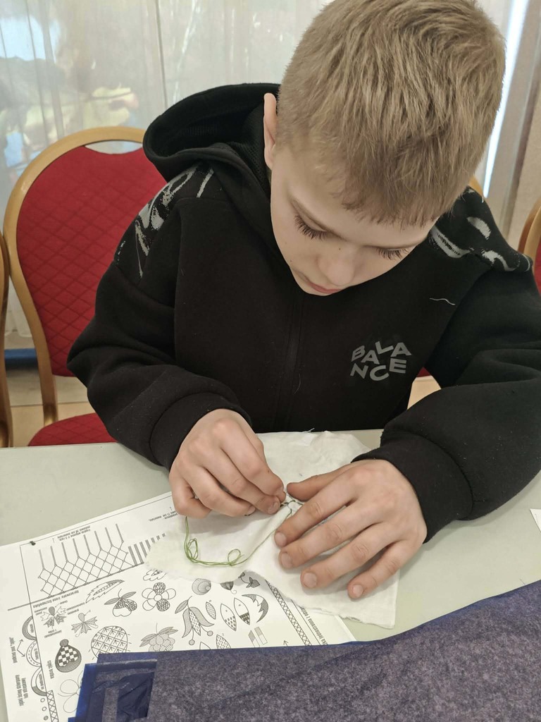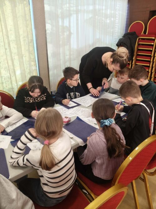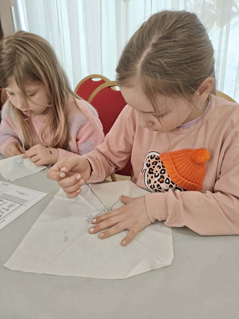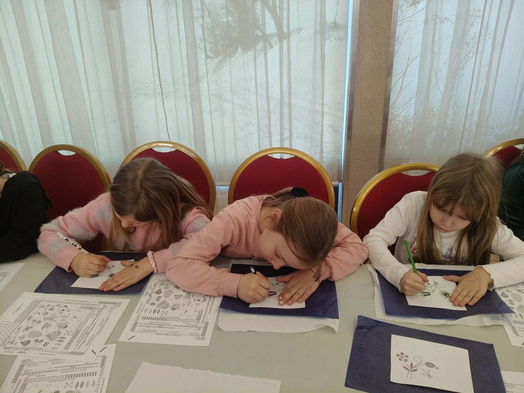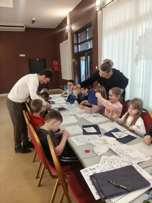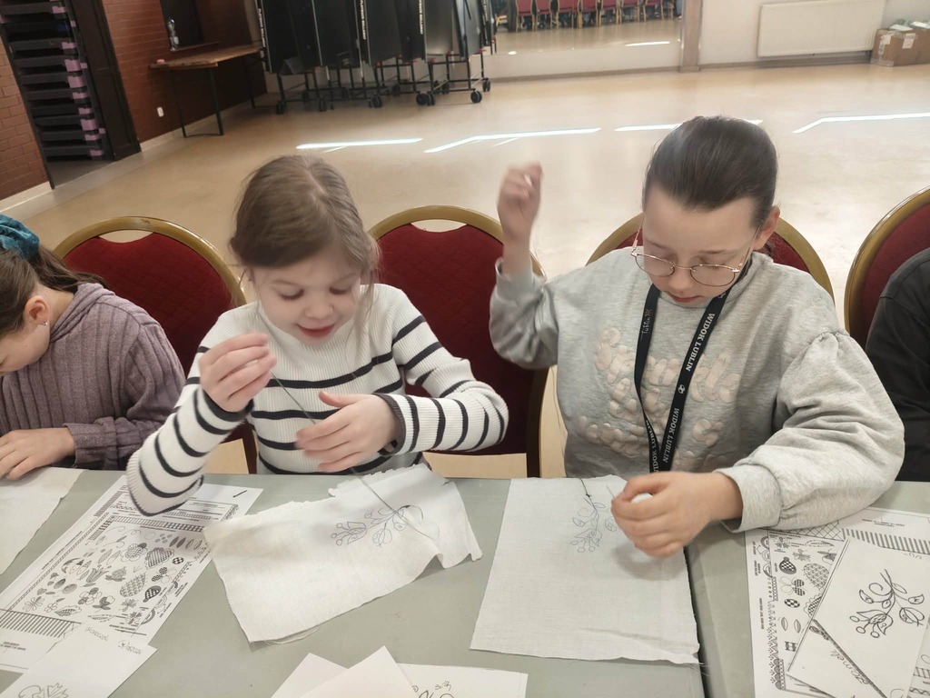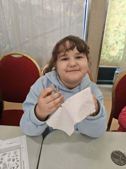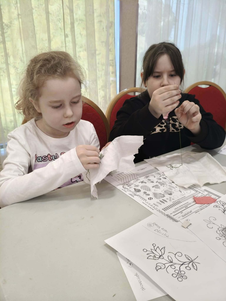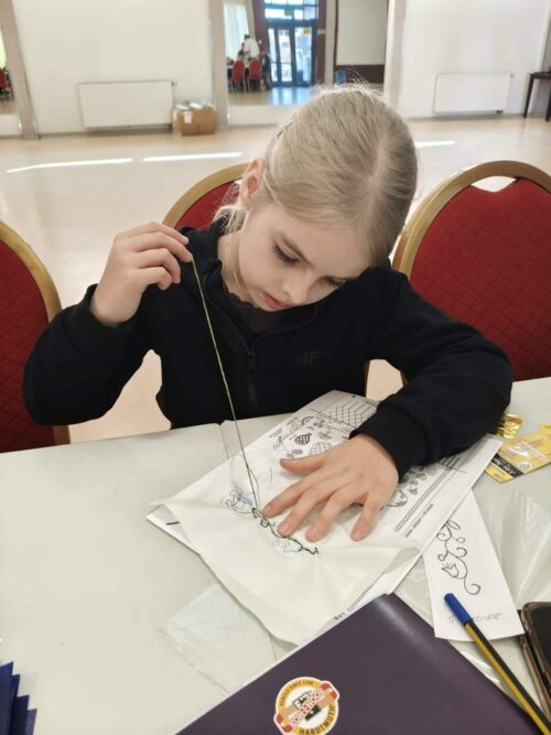 Prowadzący z ogromnym zaangażowaniem opowiedzieli uczniom o symbolice charakterystycznych wzorów kaszubskich i oraz ich kolorach. Podczas zajęć dzieci poznały podstawowe elementy haftu kaszubskiego i miały okazję spróbować swoich sił w wykonywaniu prostych wzorów inspirowanych kaszubską ornamentyką. Była to nie tylko lekcje rękodzieła, ale także wartościowe spotkanie z lokalną kulturą i dziedzictwem regionu.