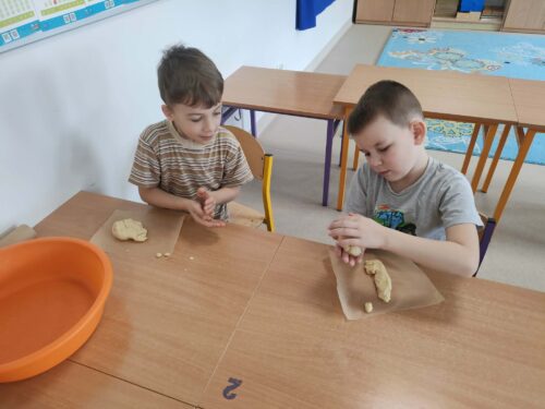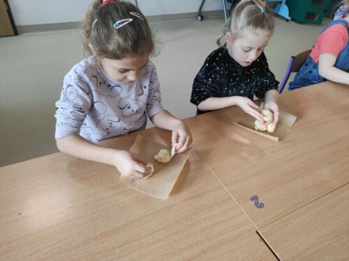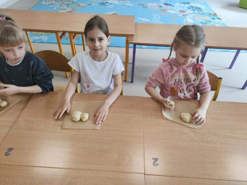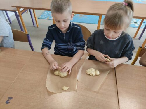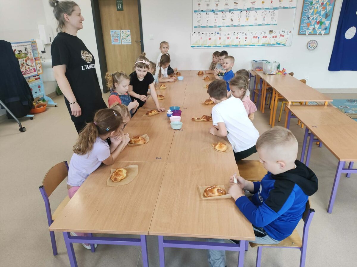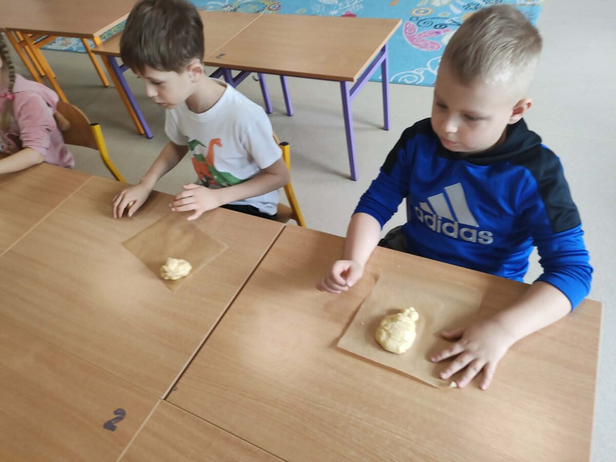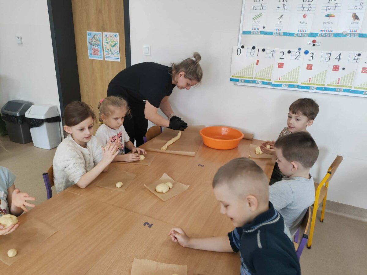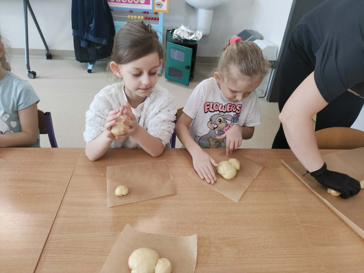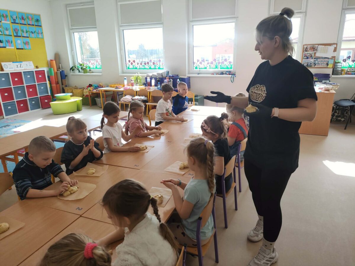 W grupie zerówkowej 0A zrobiło się dziś wyjątkowo świątecznie. Odwiedziła nas mama Alicji – pani Asia, która wprowadziła dzieci w wielkanocny nastrój, pokazując, jak przygotować drożdżowe zajączki. Każde dziecko miało okazję samodzielnie wykonać swojego własnego, wyjątkowego zajączka z ciasta. Takie zajęcia to nie tylko świetny sposób na przygotowanie się do Świąt Wielkanocnych, ale także doskonała okazja do rozwijania samodzielności i zdolności manualnych dzieci.