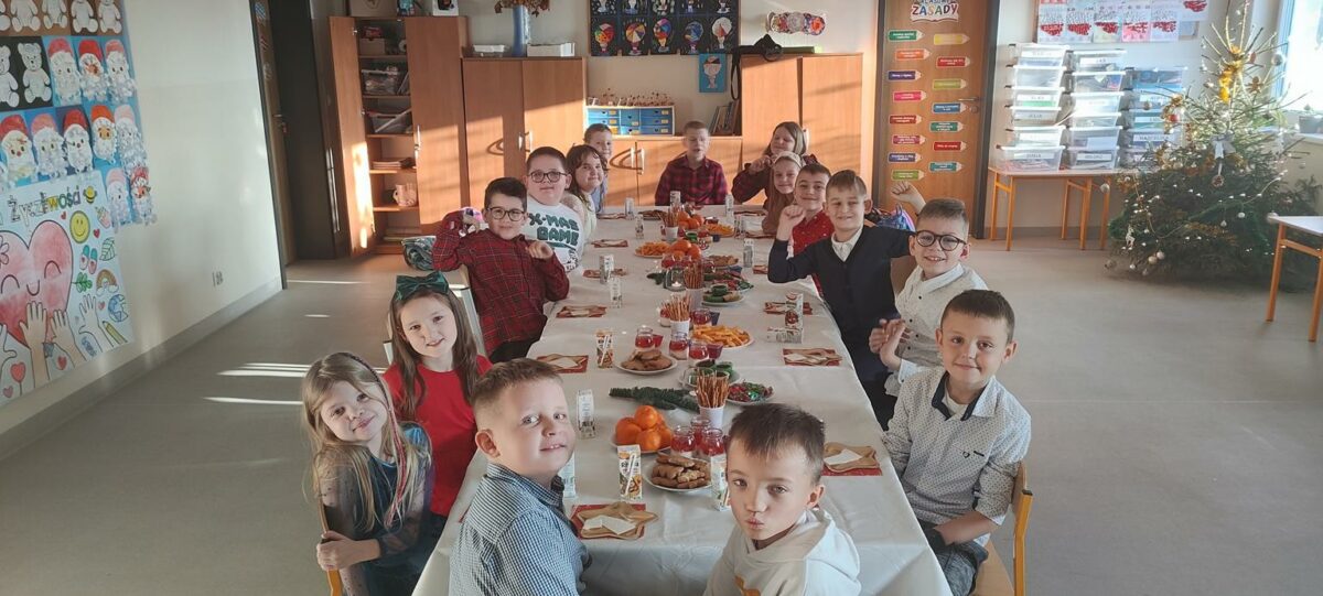 W uroczystej, rodzinnej atmosferze uczniowie wspólnie przygotowali świąteczny wystrój oraz miejsce spotkania, a następnie zasiedli do stołu, by przeżyć ten wyjątkowy czas w duchu tradycji i wzajemnej życzliwości. Nie zabrakło chwil pełnych wzruszeń – dzieci dzieliły się opłatkiem, składały sobie serdeczne życzenia, ucząc się w ten sposób wrażliwości, empatii oraz znaczenia wspólnoty.