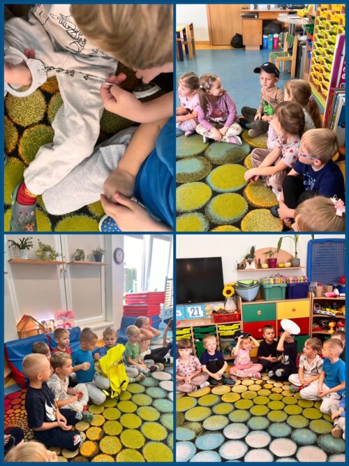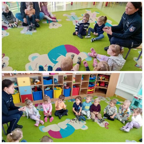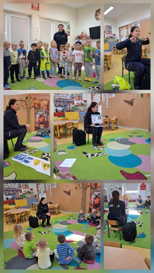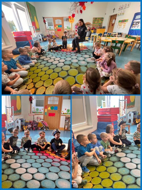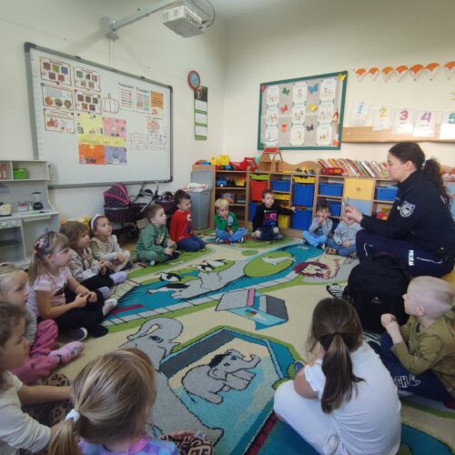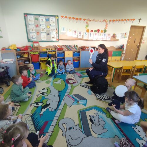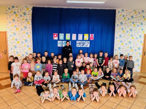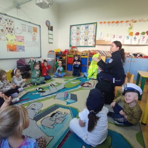Pani policjant szczególnie podkreśliła znaczenie przestrzegania zasad bezpieczeństwa – zarówno w domu, na drodze, jak i w kontaktach z obcymi osobami. Dzieci miały mnóstwo pytań, a Pani policjant cierpliwie na nie odpowiadała, pokazując przy tym, jak ważne jest, by zawsze zachować ostrożność i znać numery alarmowe.