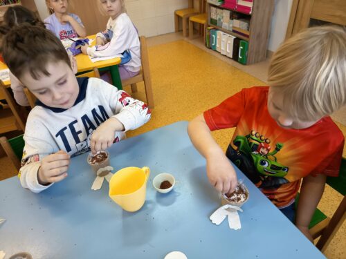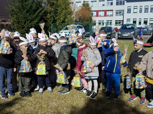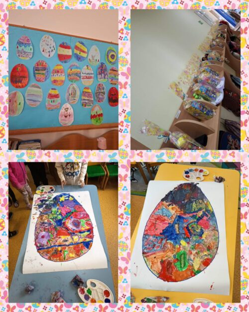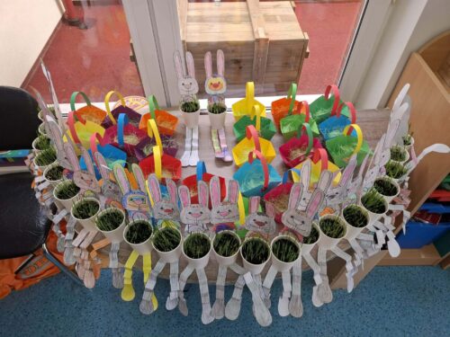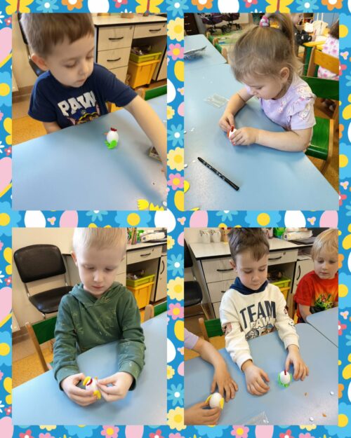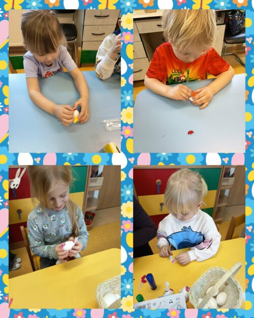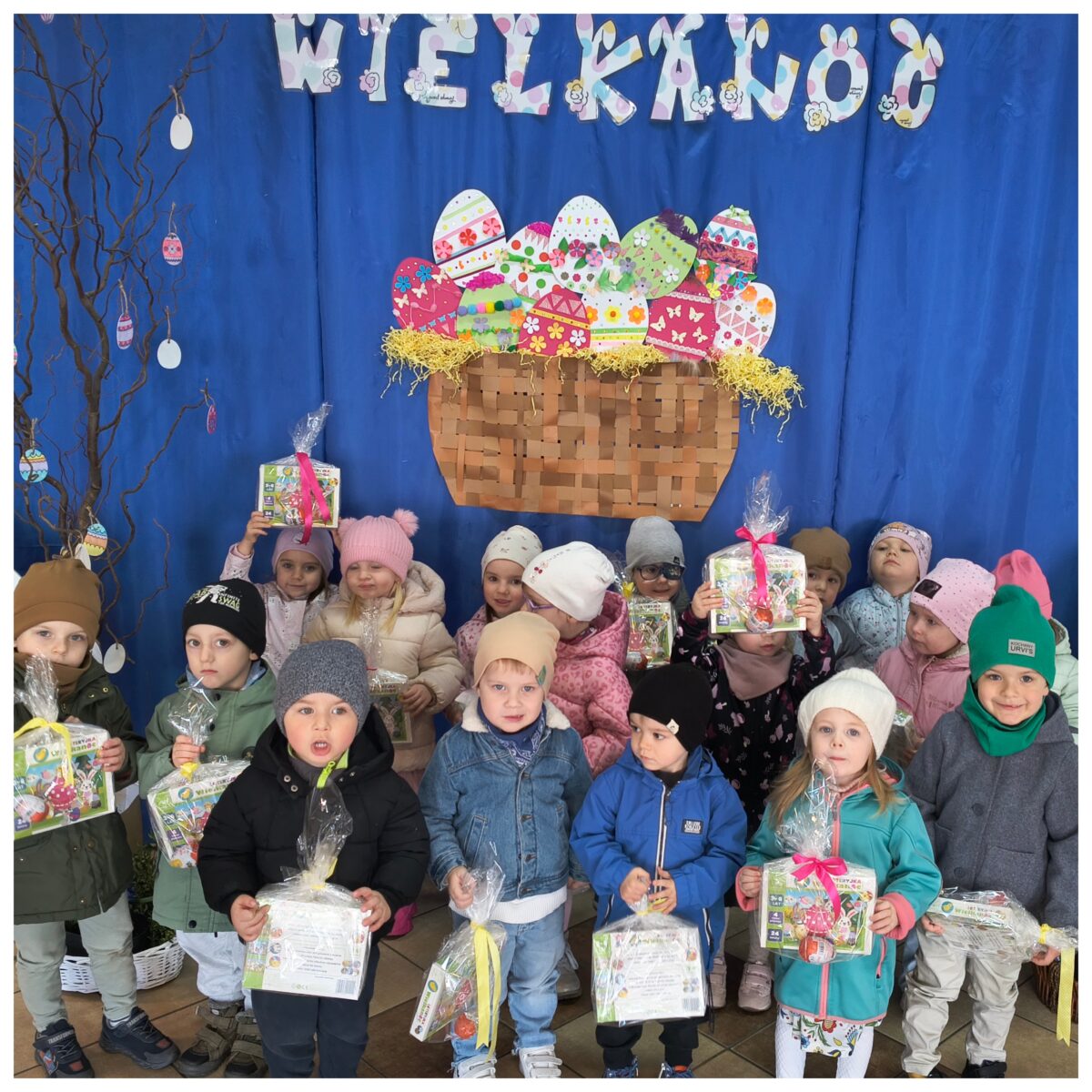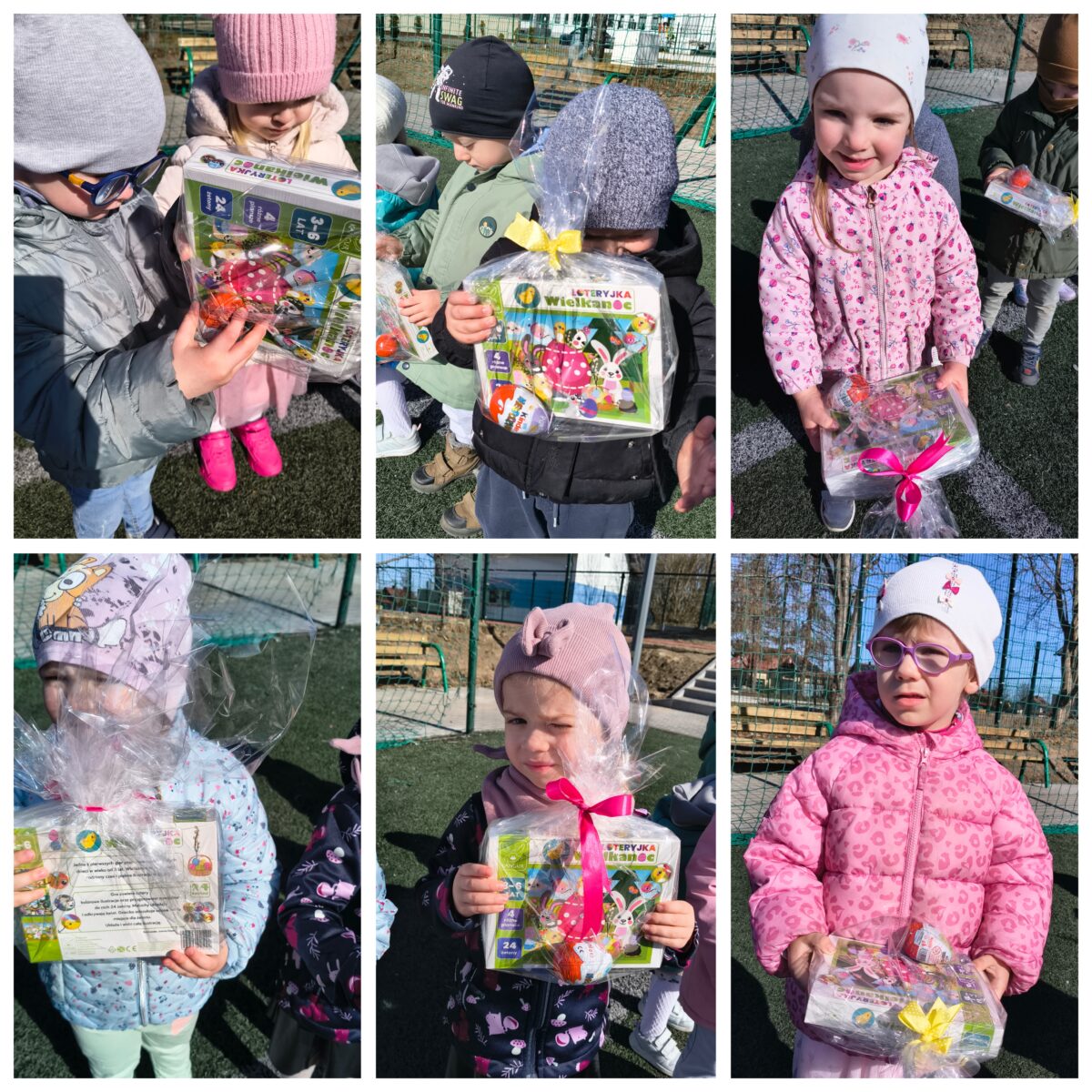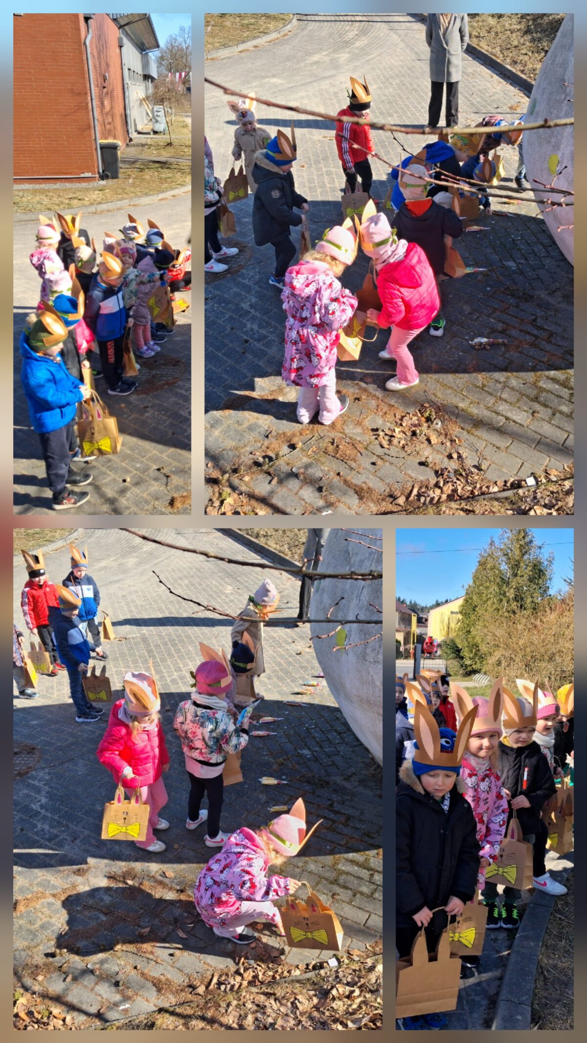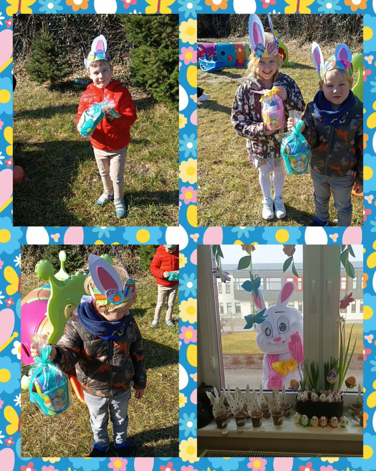Po wykonaniu wszystkich zadań przyszedł czas na najważniejszy moment – poszukiwanie prezentów! Dzieci wyruszyły na przedszkolny ogród, gdzie z radością i ekscytacją szukały ukrytych niespodzianek od zajączka. Uśmiechom i śmiechom nie było końca, gdy każde dziecko znalazło swój upominek.
