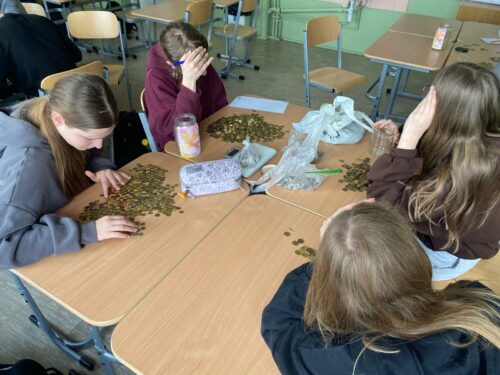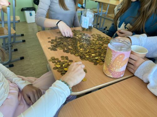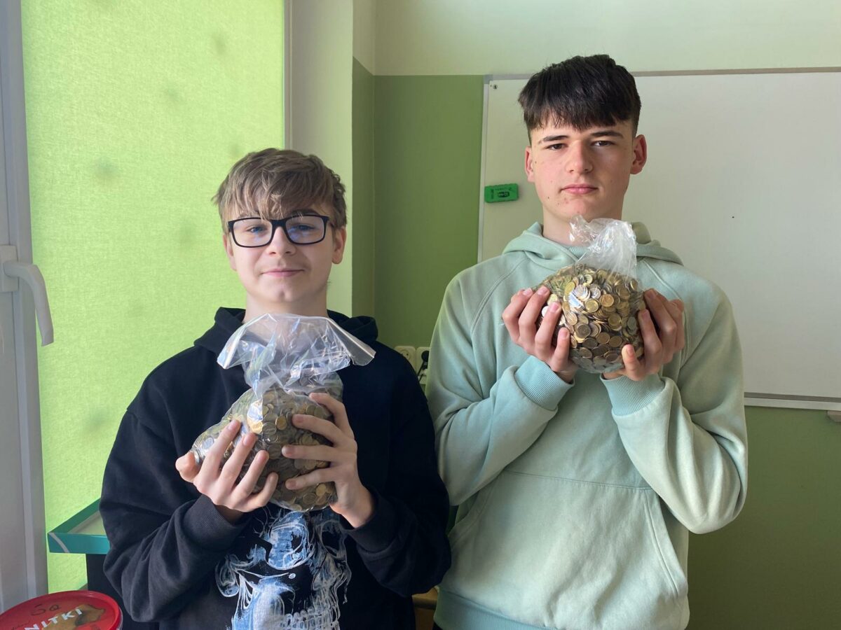 Łącznie zebraliśmy 1636,71 zł, co stanowi około 105 kilogramów monet. Przeliczając tę kwotę na liczbę uczniów, daje to średnio około 340 gramów monet na jednego ucznia – wynik, który najlepiej pokazuje skalę wspólnego wysiłku!