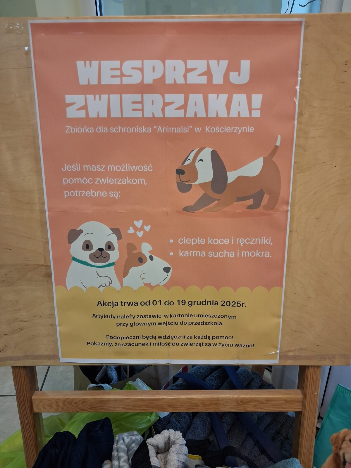 Przedszkole w Dziemianach, podobnie jak w zeszłym roku przystąpiło do zbiórki darów na rzecz schroniska z Kościerzyny. Do akcji włączyli się rodzice, przedszkolaki oraz pracownicy przedszkola. Udało nam się zebrać najpotrzebniejsze rzeczy w postaci: karmy, koców, ręczników. Chcemy pokazać, że nawet małe serca mogą zrobić dobre rzeczy. Dziękujemy za udział w naszej akcji!