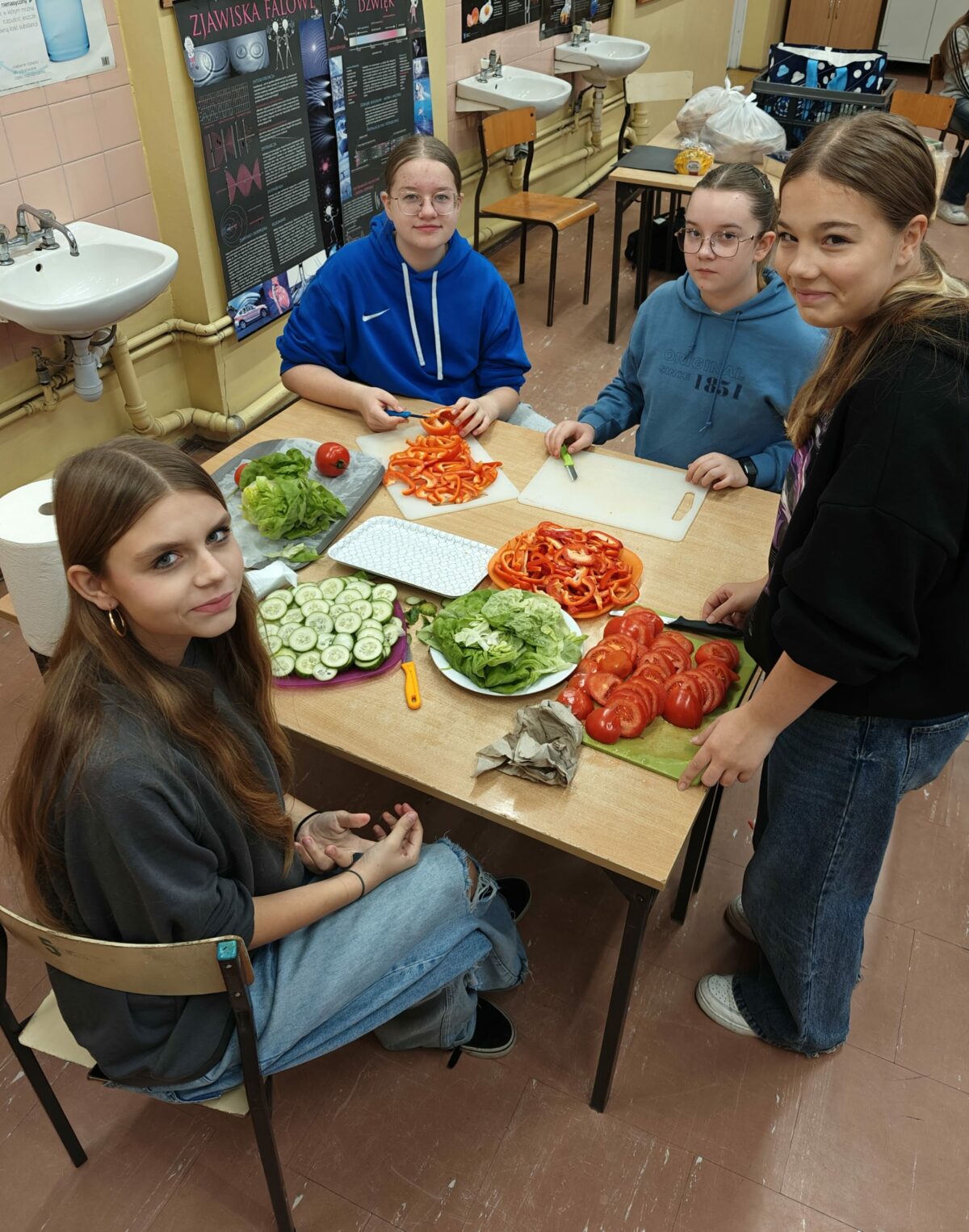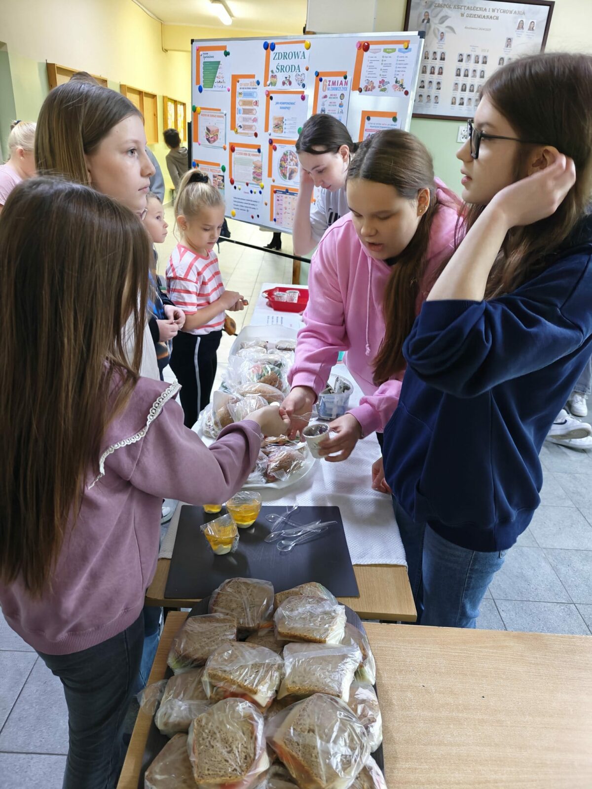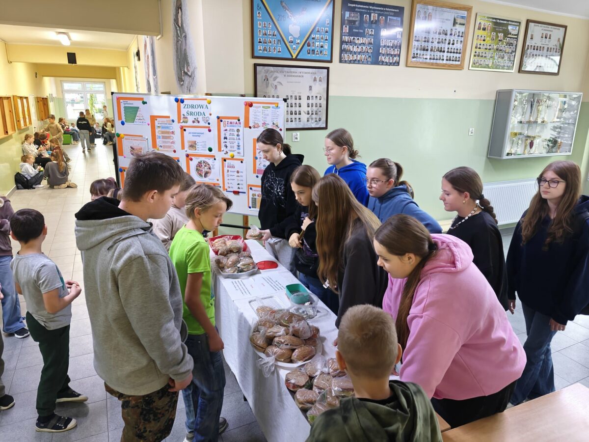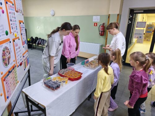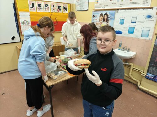 W minioną środę, 19 listopada, w naszej szkole dominowało zdrowe drugie śniadanie. Uczniowie klas 8C i 7B przygotowywali zdrowe kanapki. Do wyboru były bułki kukurydziane z ziarnami, bułki grahamki lub kanapki z chleba razowego, z serem lub szynką przystrojone kilkoma rodzajami sałat, szpinakiem, pomidorem, papryką i ogórkiem. Można było też spróbować galaretek z owocami.
